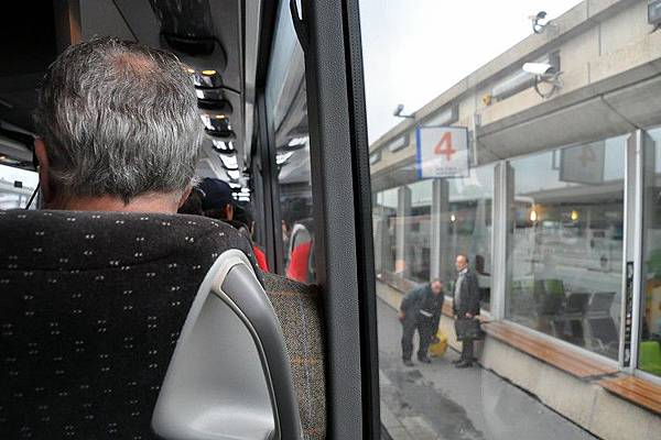 巴士從一航站開出,所以從這幾乎都有位子。從一航站開往二航站,二航站分了很多部分ABCDEF,所以車子在那邊繞了很多圈載客,才開往巴黎市區。