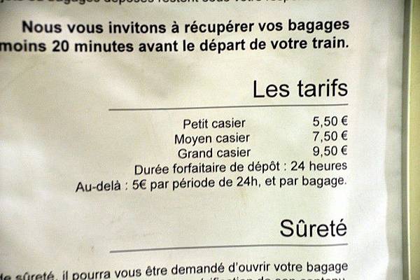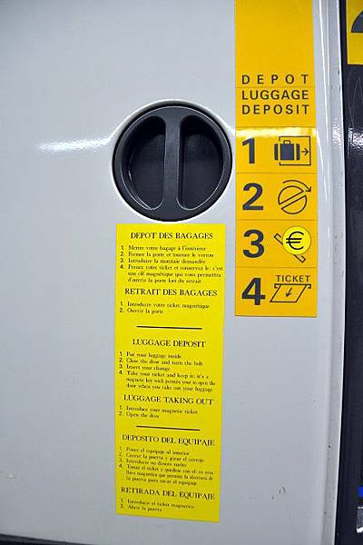 進車站,去寄存行李,要找Consignes的指示,上面有用英文寫著luggages lockers,還畫著行李寄放的圖案。