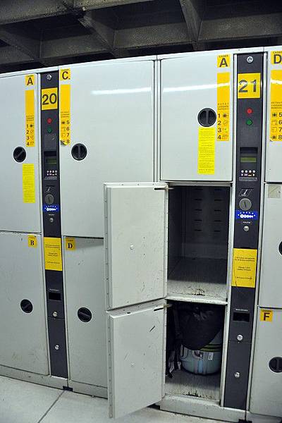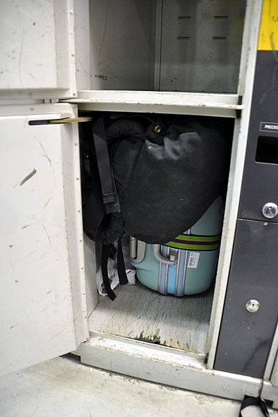 我們的皮箱跟背包有兩件要寄存,原本想說可能要放大的,但想到我可以把背包的東西拿出來,塞在周圍,這樣就省得要租大的,省下兩歐。