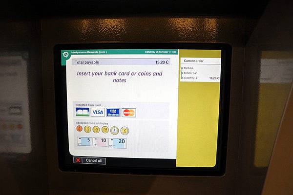至於今天的一日票,就要到自動販賣機買Ticket Mobilis ,Zone1-2的Mobilis票,一人6.6歐,小小一張。